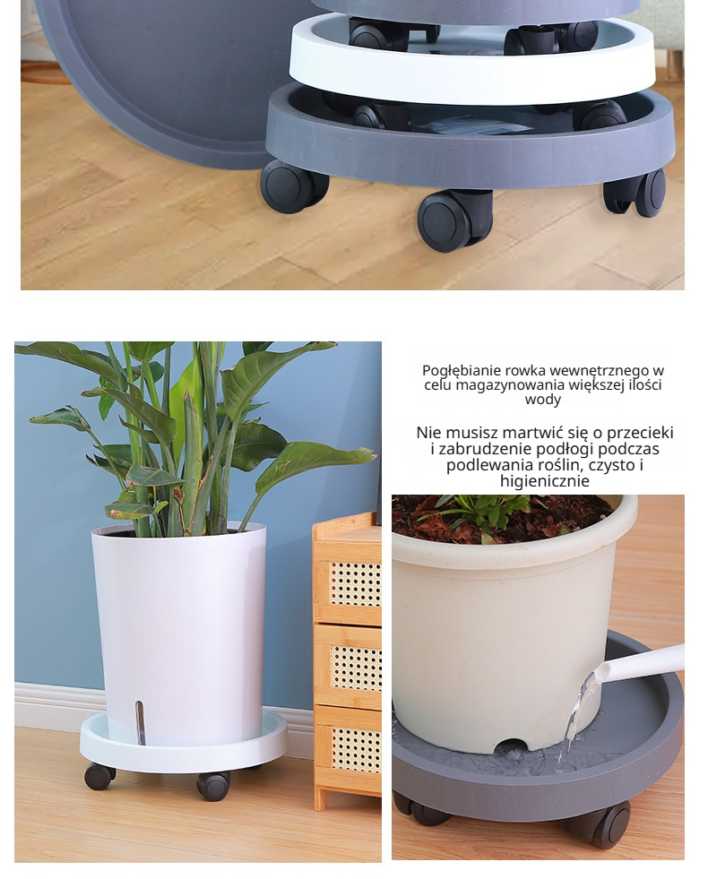 Okrągła mobilna podstawka z kółkami do doniczek, oddychająca donica na kółkach