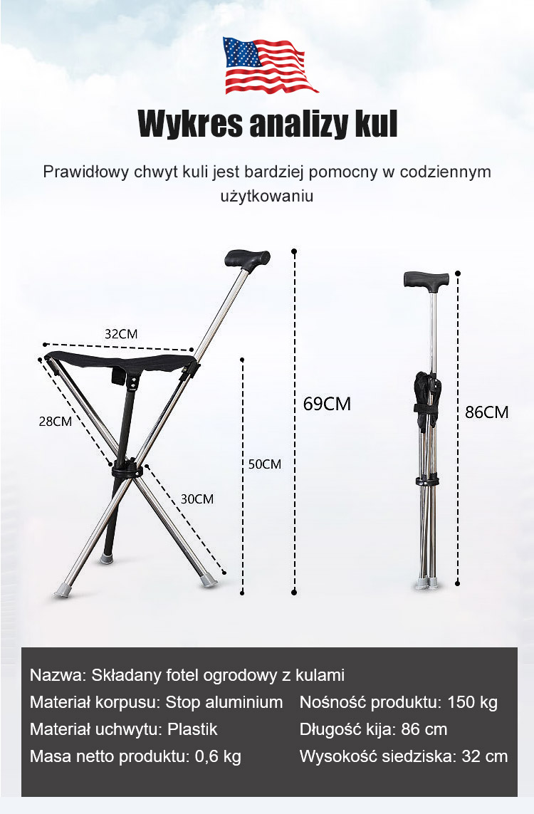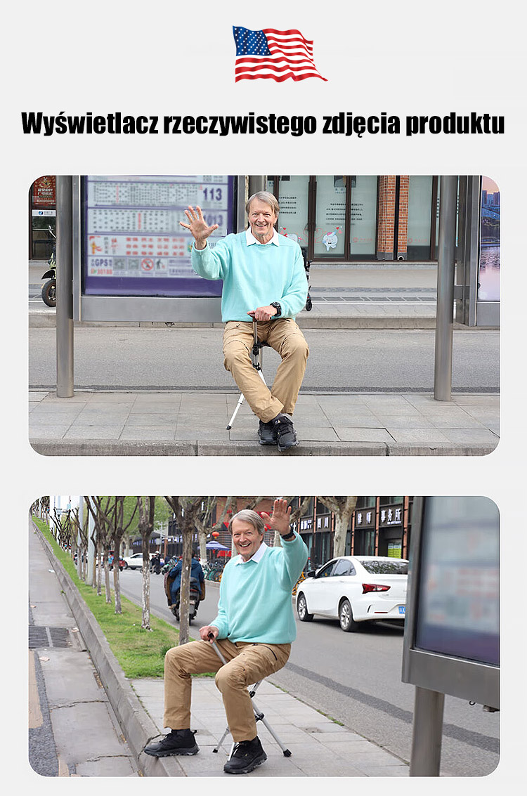 【Projektowany przez doktora z Harvardu】Zewnętrzne składane krzesło o kulach dla osób starszych chodzący stołek o kulach✨Może błyskawicznie zmienić się z laski w stołek