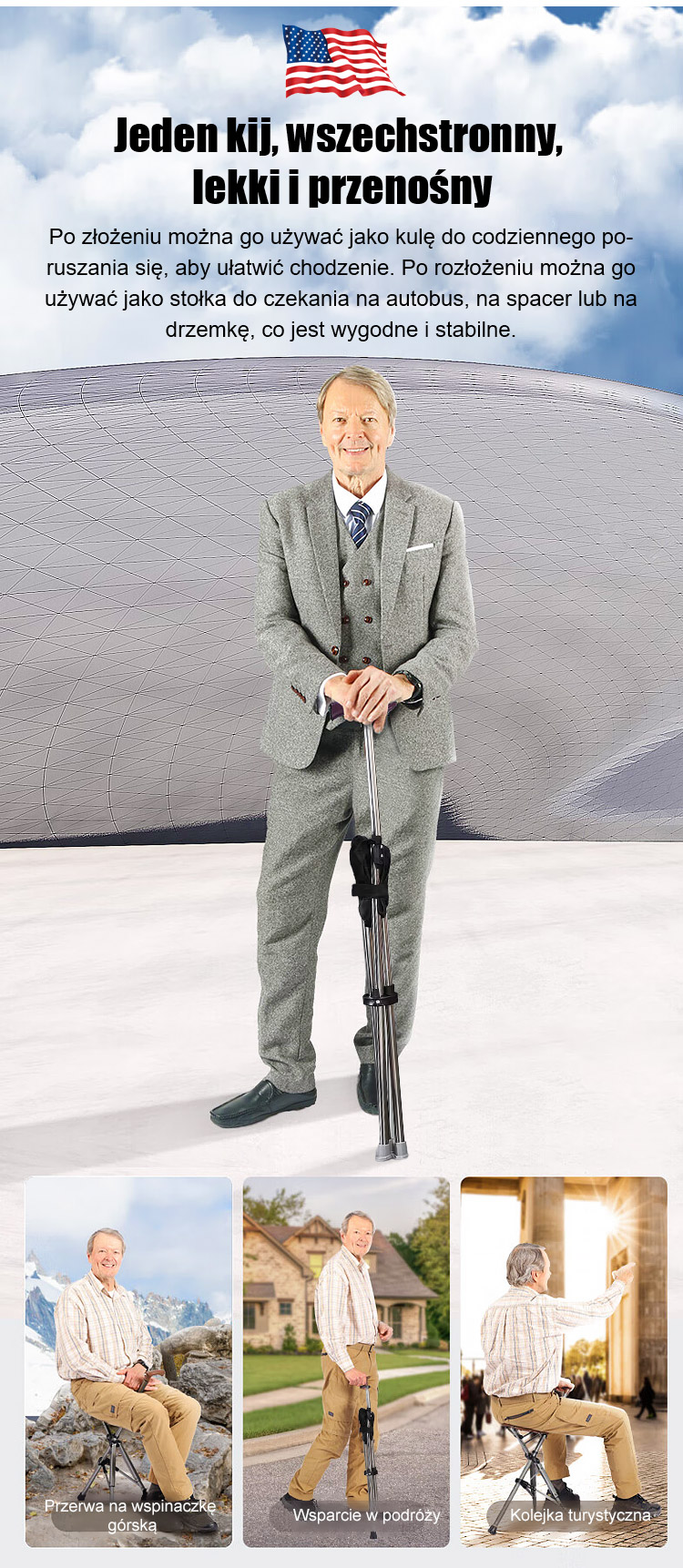 Ten stołek z laską, zaprojektowany przez chirurga ortopedę z Harvard Medical School, jest po prostu „mobilnym siedziskiem” dla osób z problemami z poruszaniem się! W mgnieniu oka zmienia się z laski w solidny stołek, zapewniając stabilne i niezawodne podparcie podczas siedzenia!